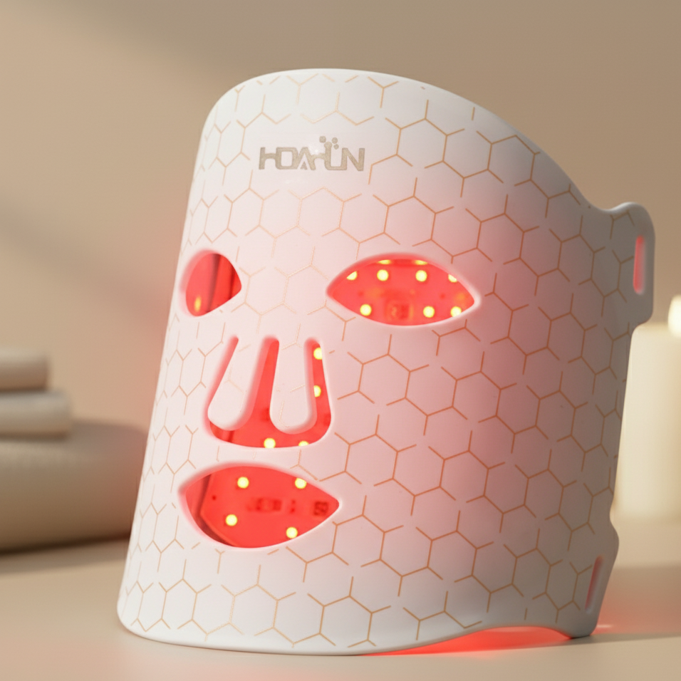 Diese hochwertige LED-Maske kombiniert rotes und blaues Licht, um die Kollagenproduktion zu stimulieren, Unreinheiten zu reduzieren und Ihrer Haut einen gesunden, strahlenden Glow zu verleihen – ganz einfach von zu Hause aus.